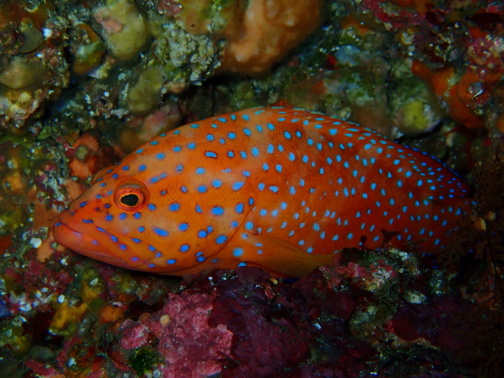 ユカタハタ & オキゴンベ 真っ赤な体に青い斑点が散らばるユカタハタは、いつのまにか定番種になりました。