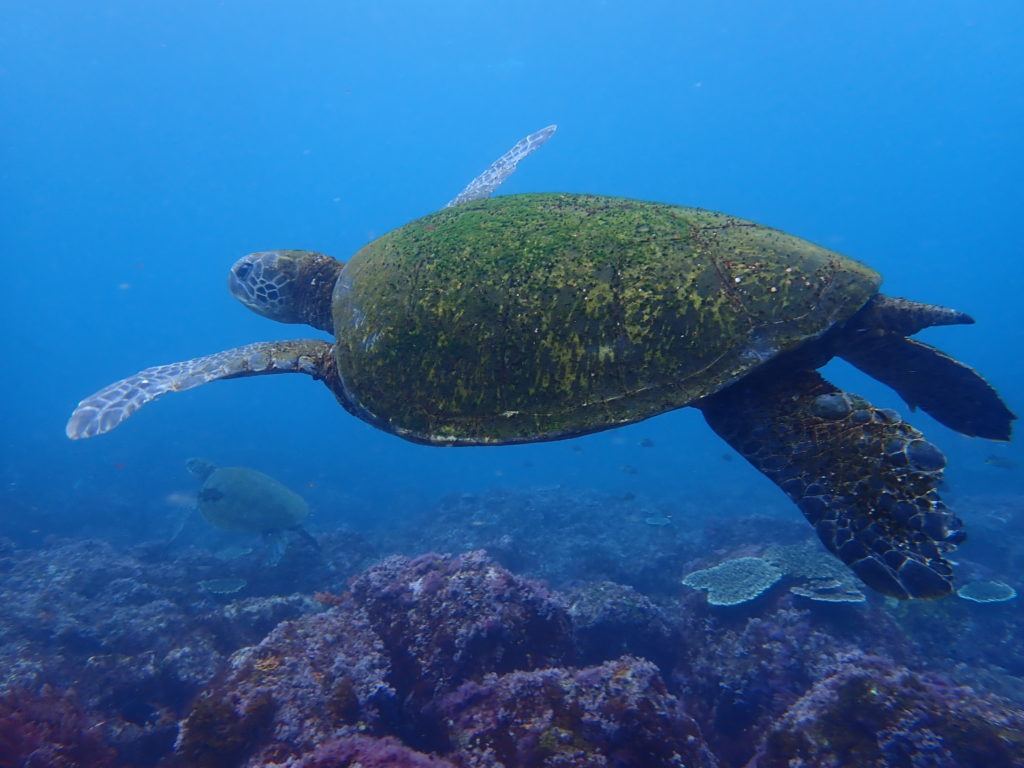 なんとアオウミガメが5個体も集まっていました!伊豆大島の豊かな生態系を象徴するような圧巻の光景です。
